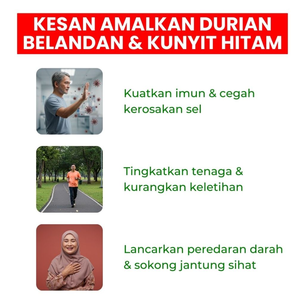 Produk terbaru keluaran MMi Herbs yang menawarkan formulasi 2 kali lebih berkesan dari Kopi Durian Belanda yang sebelumnya. Gabungan ekstrak daun dan durian belanda serta kunyit hitam yang sudah terbukti secara sains dimana tinggi dengan antioksidan, omega 3,6 dan 9